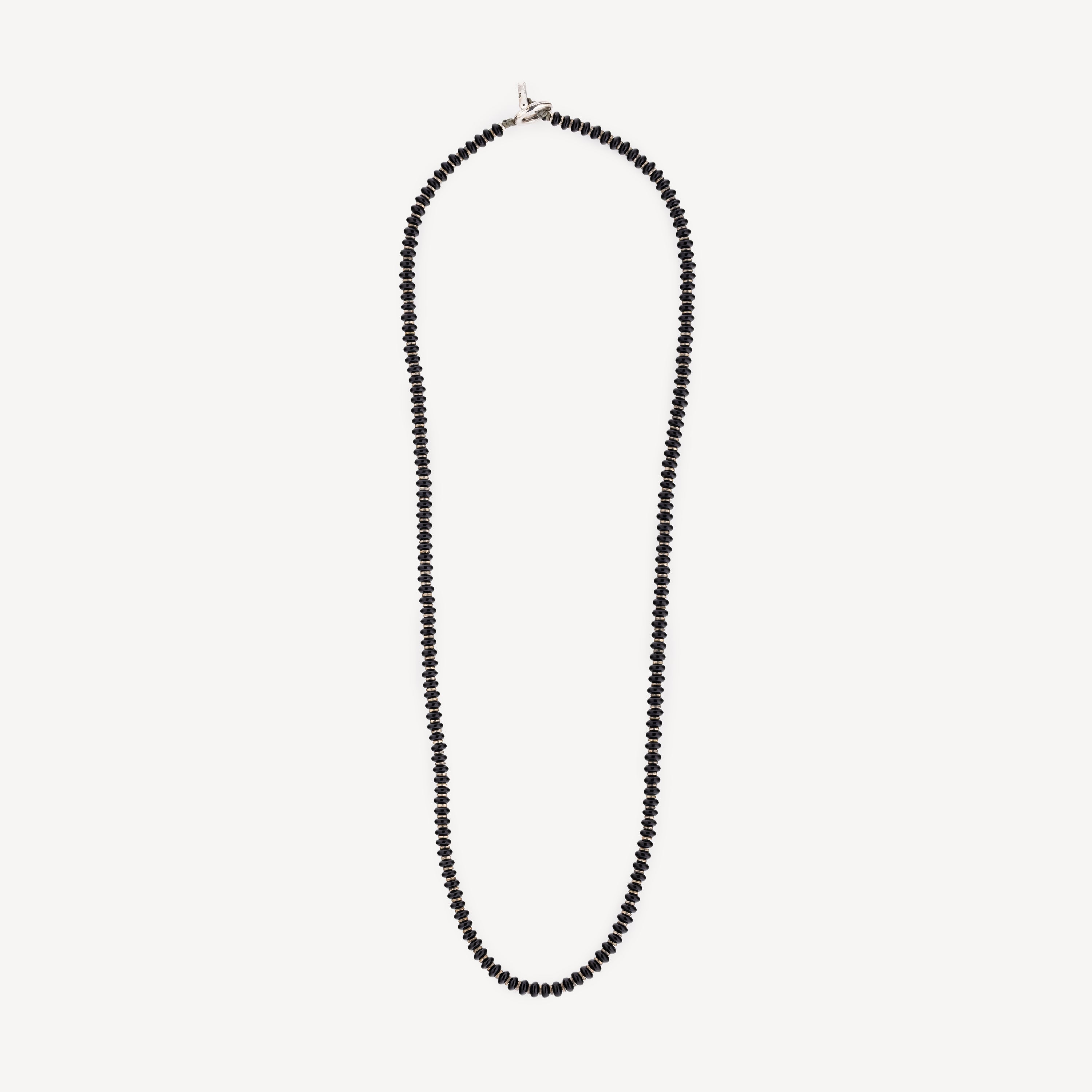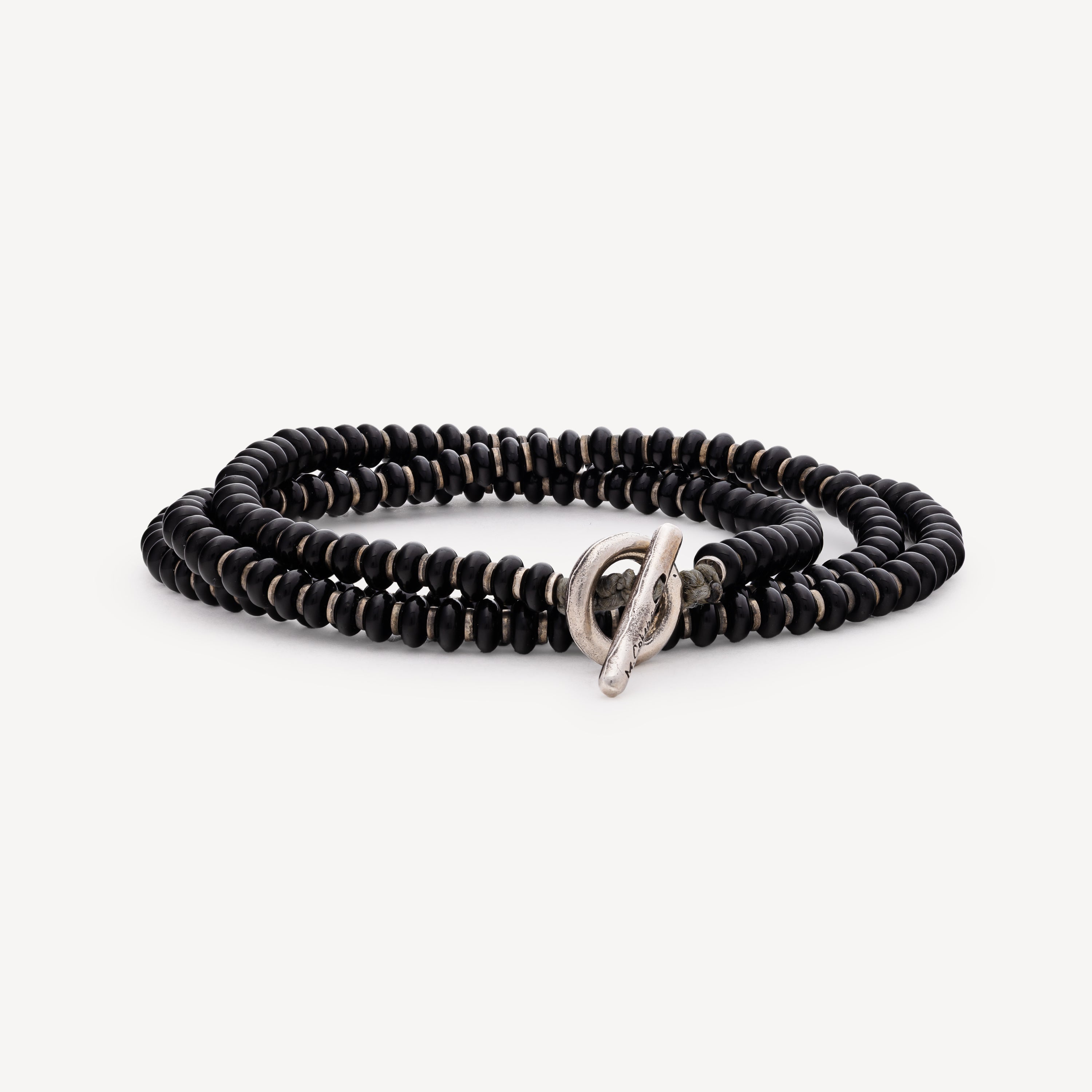 Bracelet mounted on a gray cord with onyx and Silver beads. Can also be worn as a necklace.
