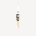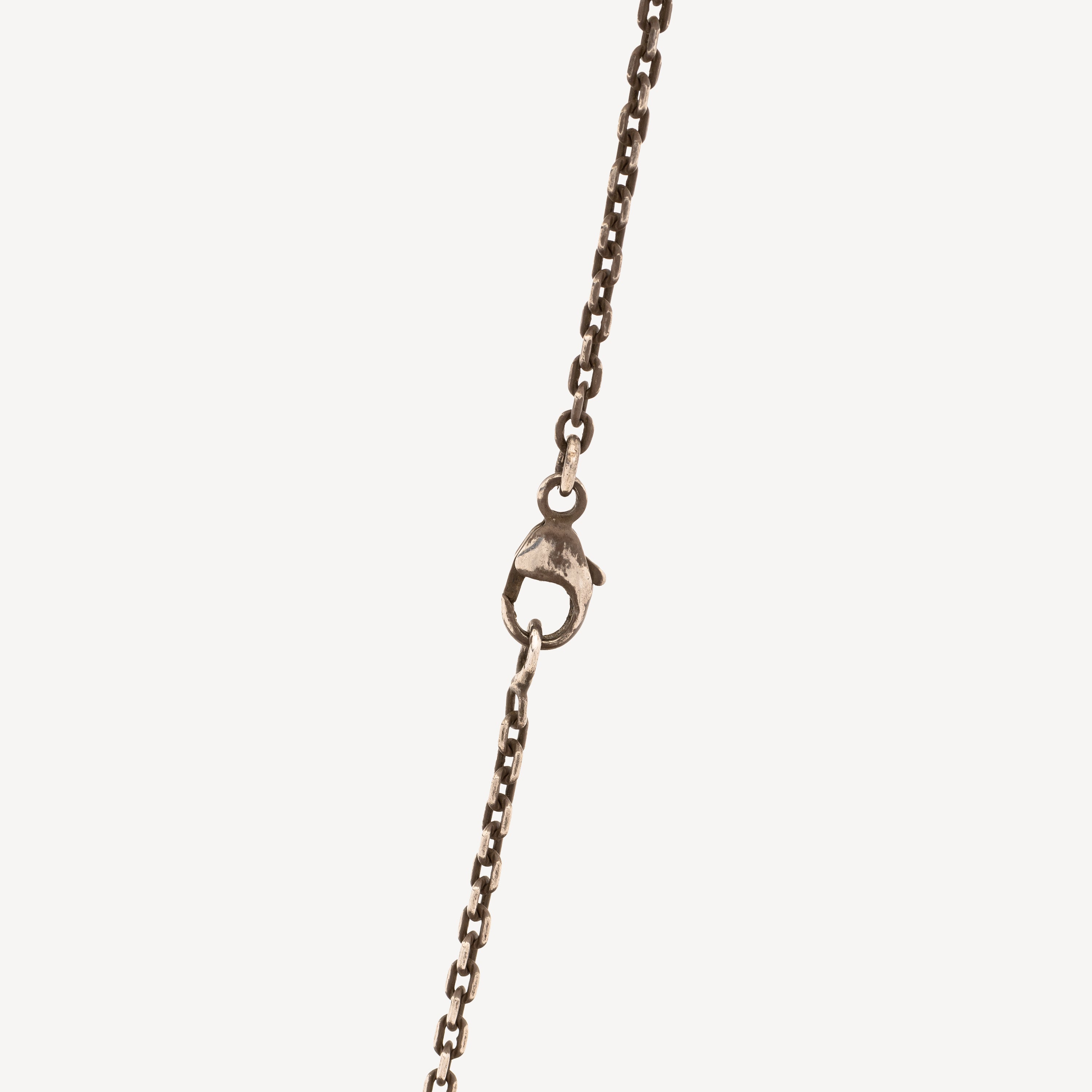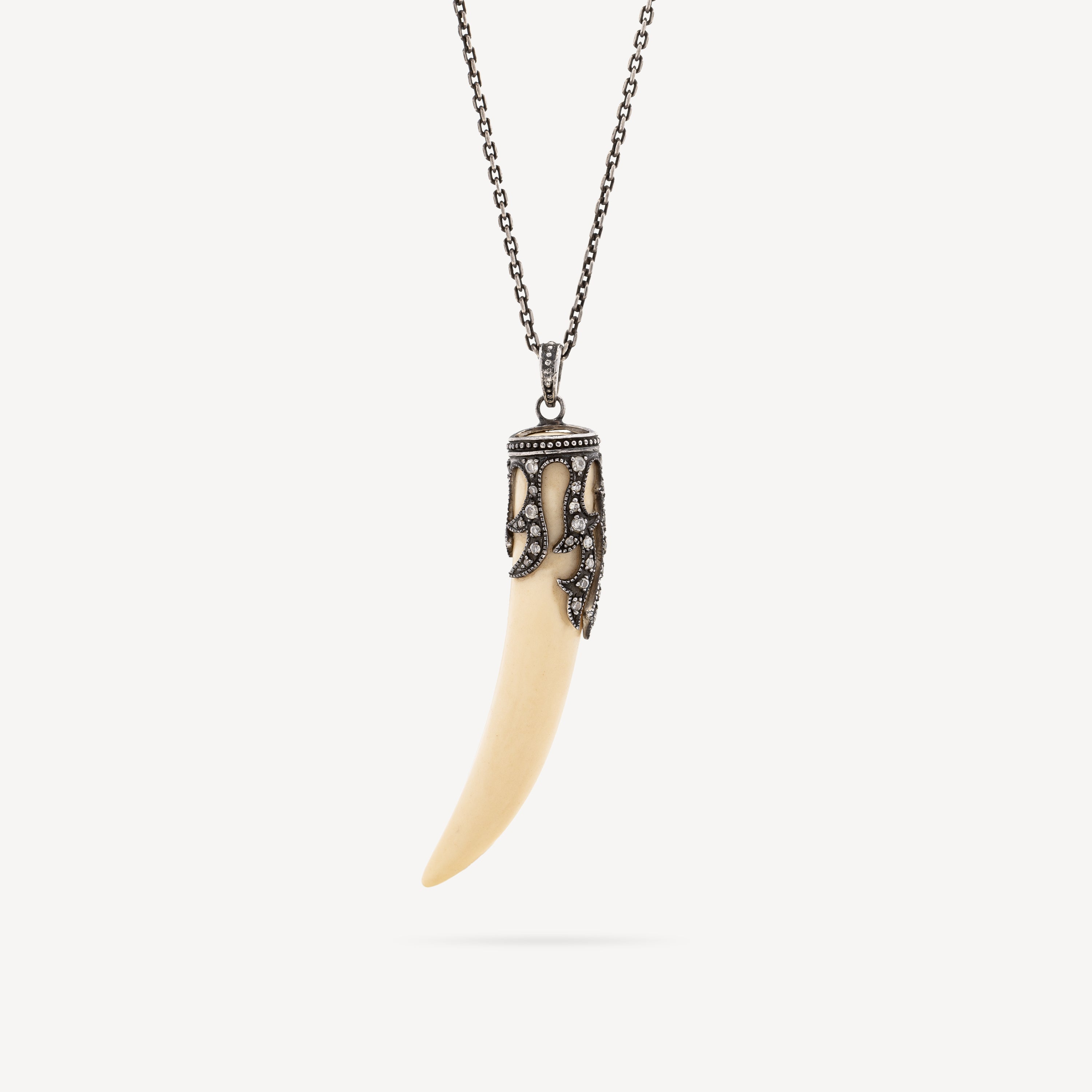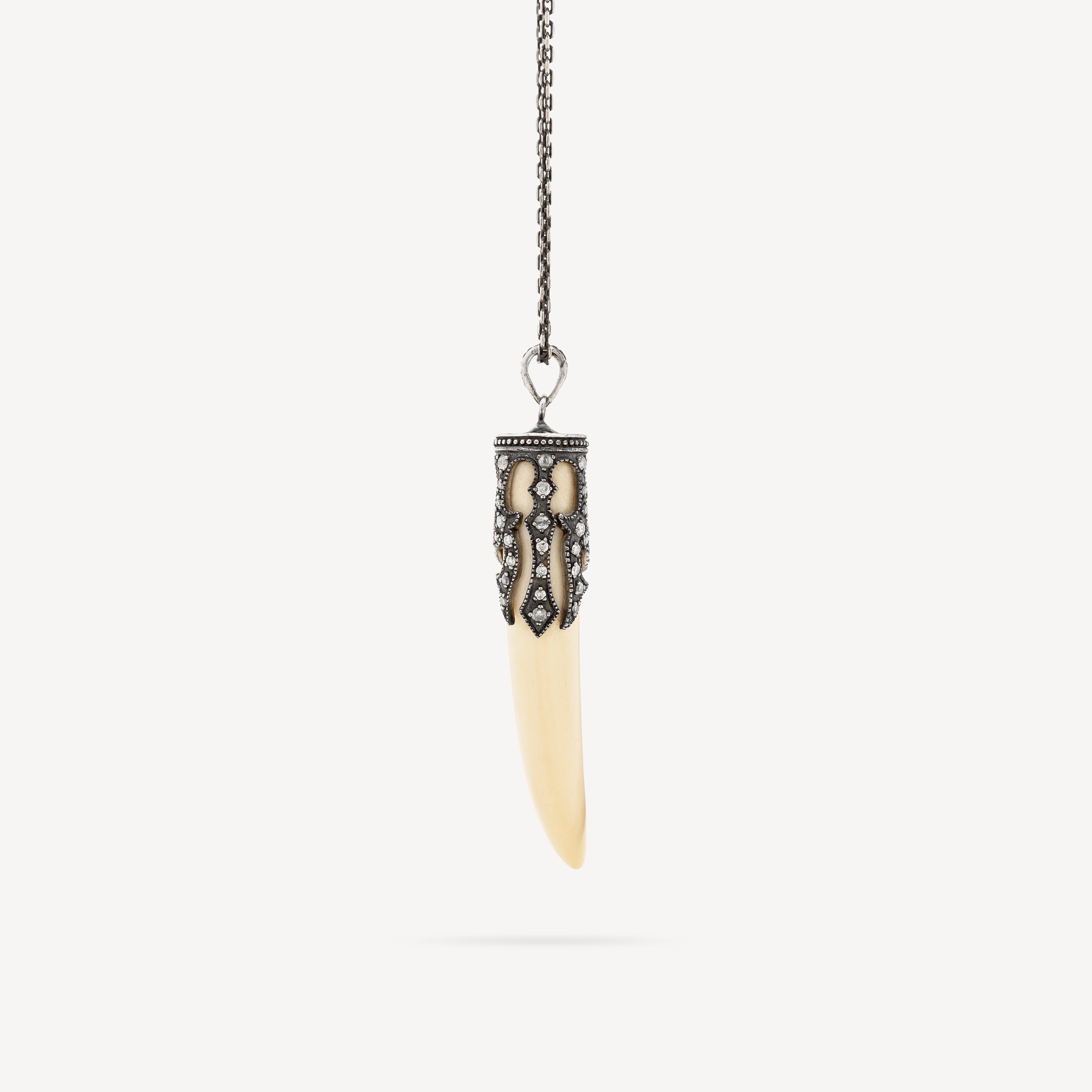 This black rhodium-plated gold necklace is enhanced by a shark tooth pendant for a rock look.