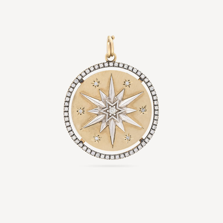 9ct yellow gold medal set with white sapphires and a central star. The six elements are engraved on the reverse.