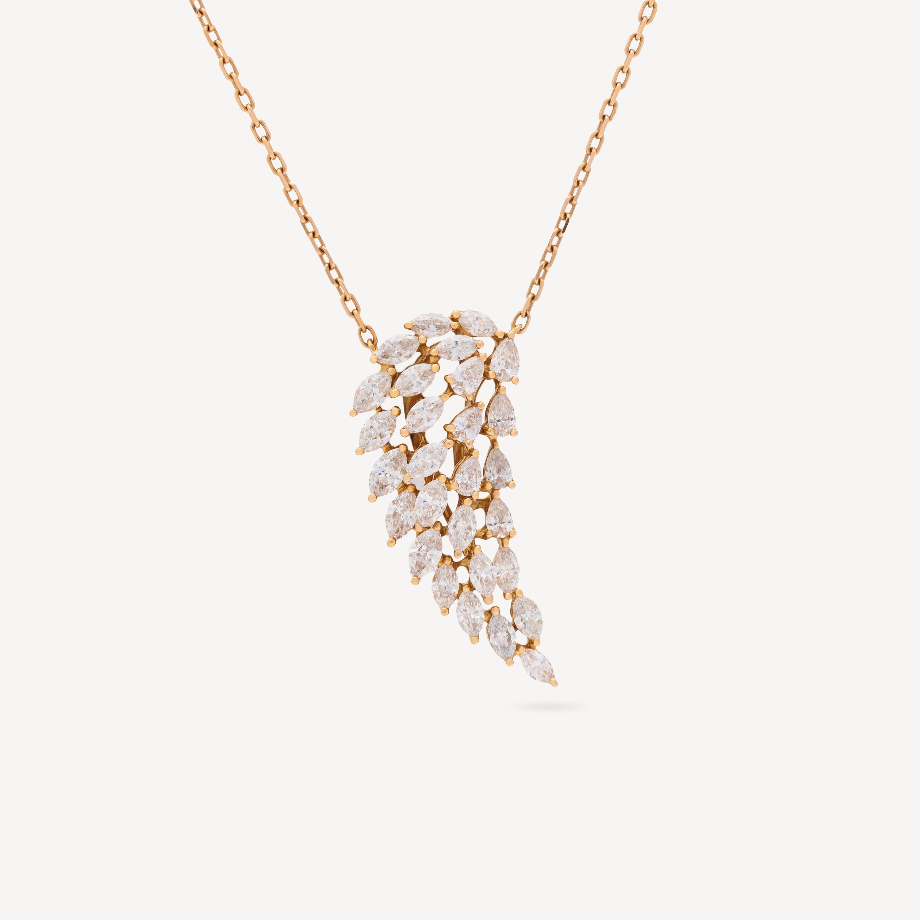 This entirely hand-crafted Messika pavé necklace in 18 ct Rose Gold is part of the Angel collection, a famous line that celebrates the sensual shapes of marquise-cut and pear-cut diamonds.
