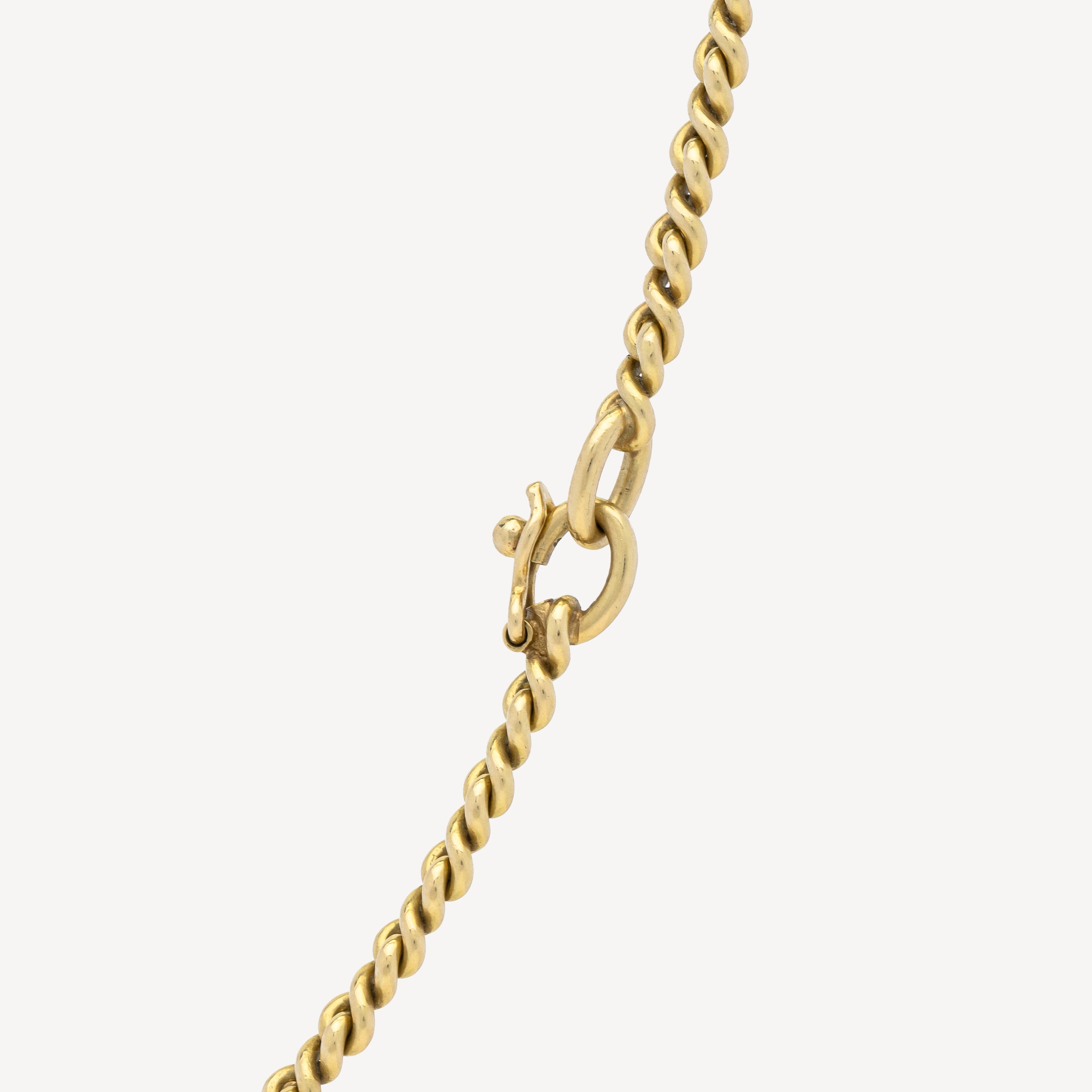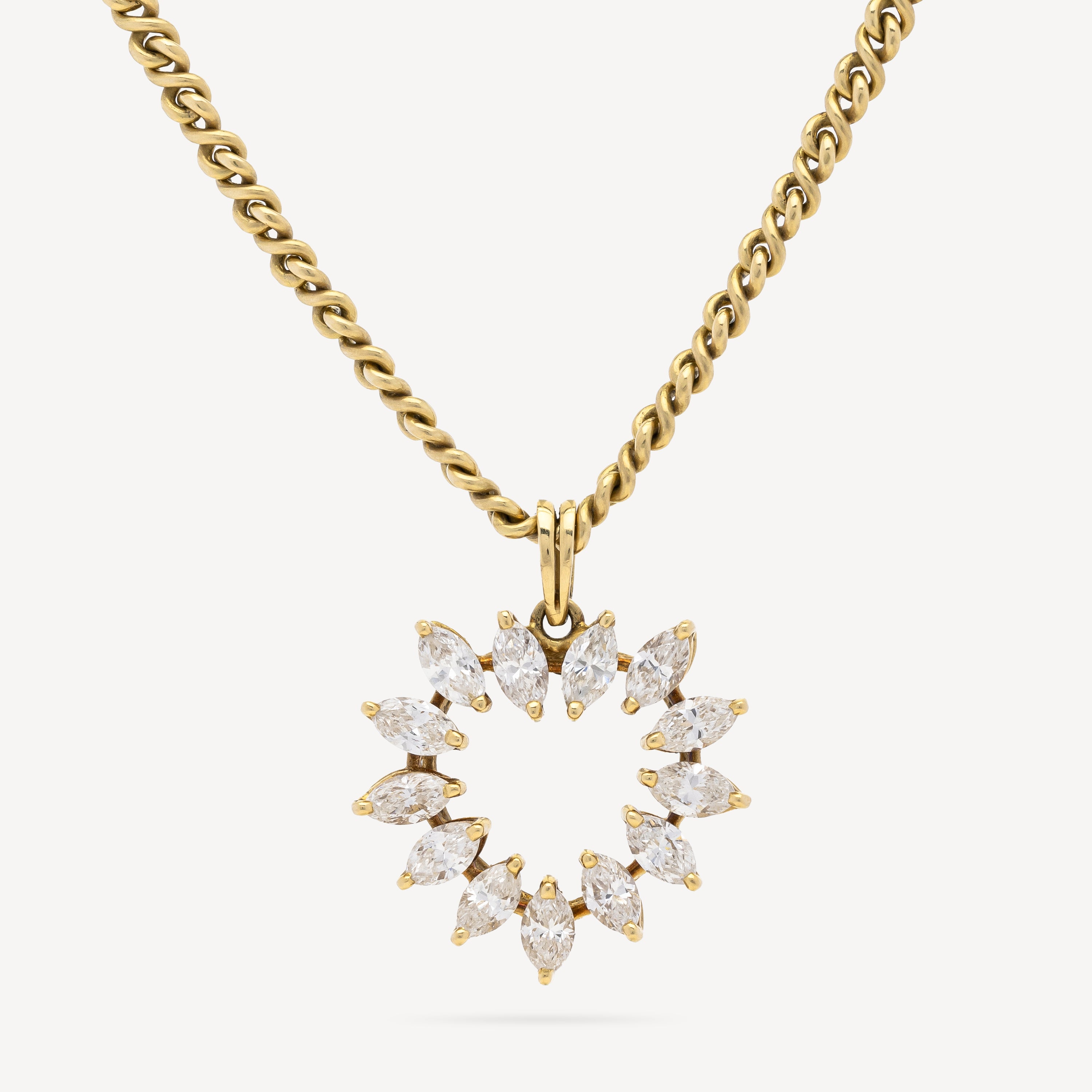 Yellow gold necklace with heart pendant adorned with white marquise diamonds.