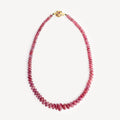 River necklace of faceted rubies with gold clasp set with small rubies.