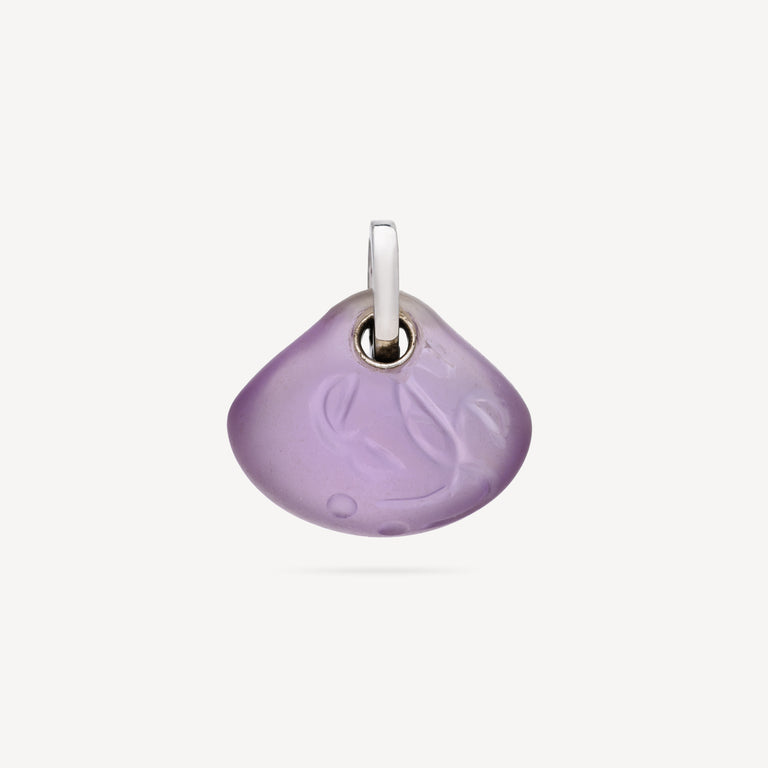 Purple amethyst frosted pendant engraved with a tree of life with white gold clasp.