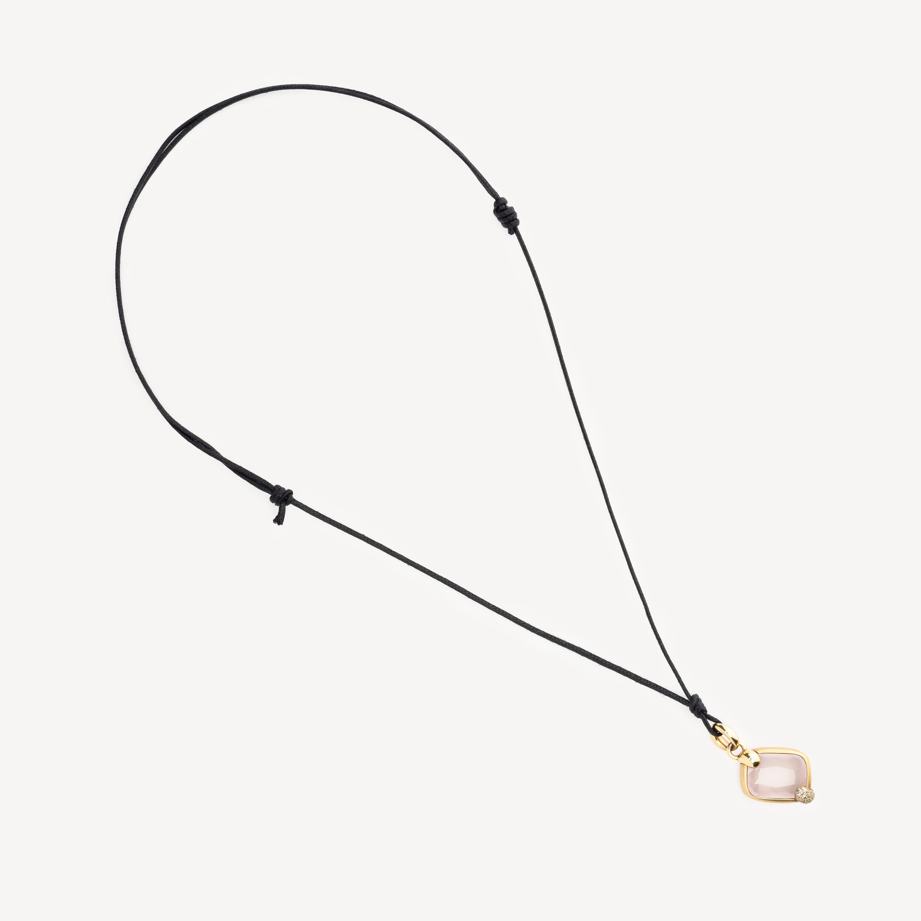 Magnificent pendant necklace in yellow gold adorned with a rose quartz and a claw paved with white diamonds.