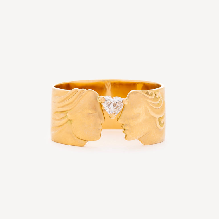 A Cosima Rols ring full of poetry, hand-sculpted in matte gold and engraved "THE LOVERS" on the inside. A symbol of eternity and light, diamonds elevate energies, enhance mental clarity and inner strength, and bring balance and purity to the wearer.