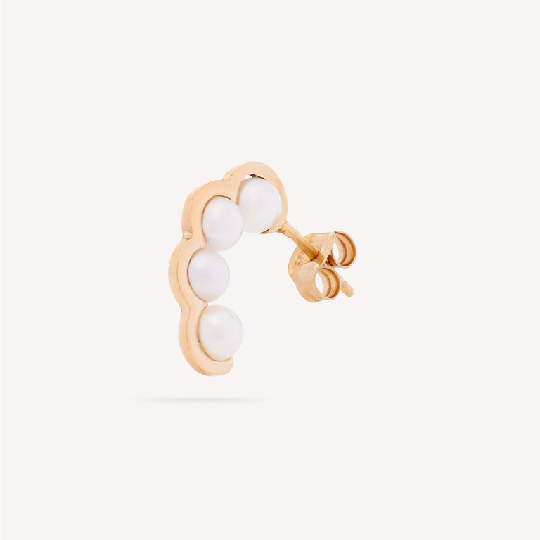 This Stud earring in 18-carat Rose Gold is delicately adorned with several white pearls, creating a subtle and refined play of light. Symbols of purity and femininity, pearls soothe the emotions, promote intuition and bring a deep sense of inner calm and harmony.