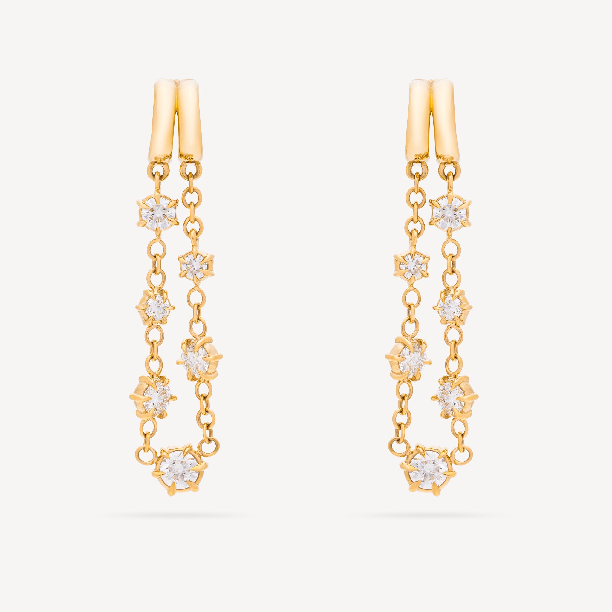 Constellation double piercing earrings feature a double Hoop linked by a chain set with round diamonds. A symbol of purity and strength, diamonds amplify energy and clarify the mind.