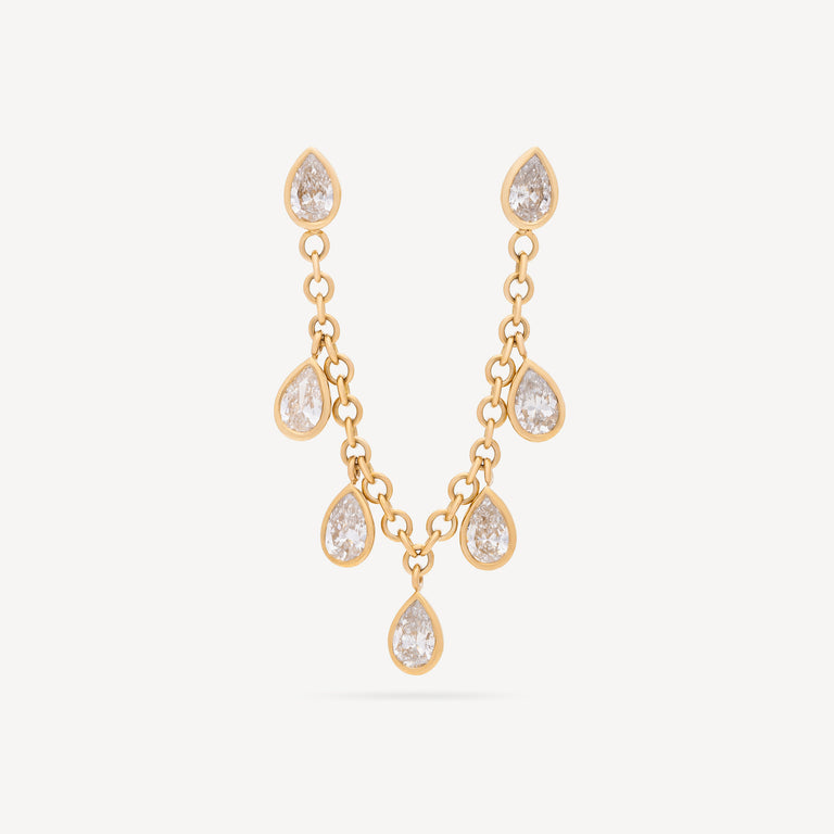 The Candy Drop Marquise Double Piercing earring is sure to impress. It is set with seven laboratory-grown diamonds, mounted on a delicate round-link chain. A symbol of purity and strength, diamonds amplify energy and clarify the mind.