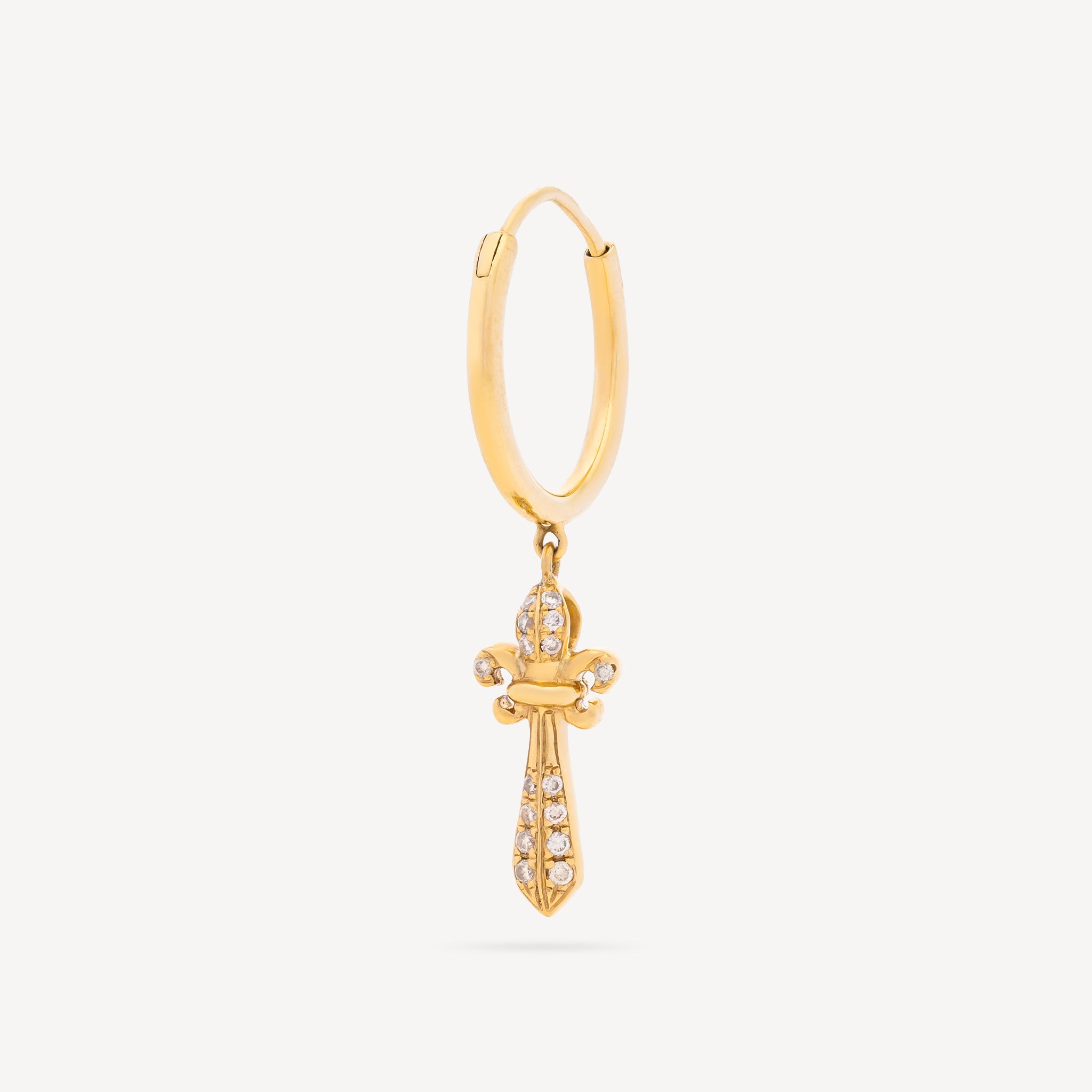 Small, ultra-light Hoop in yellow gold adorned with white diamonds. The sword represents ennoblement, light and knowledge, cutting the "material" chains that hinder personal fulfillment.