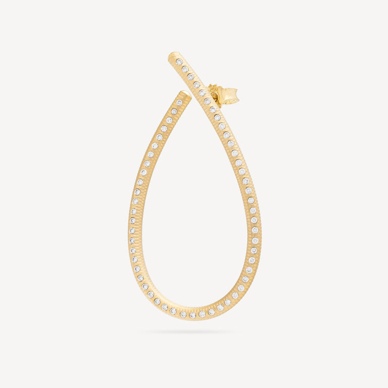 In the Galaxy version, the iconic Kharisma earring has been adorned with a dense row of 57 sparkling diamonds, which follow and underline the geometric shape of the curve.