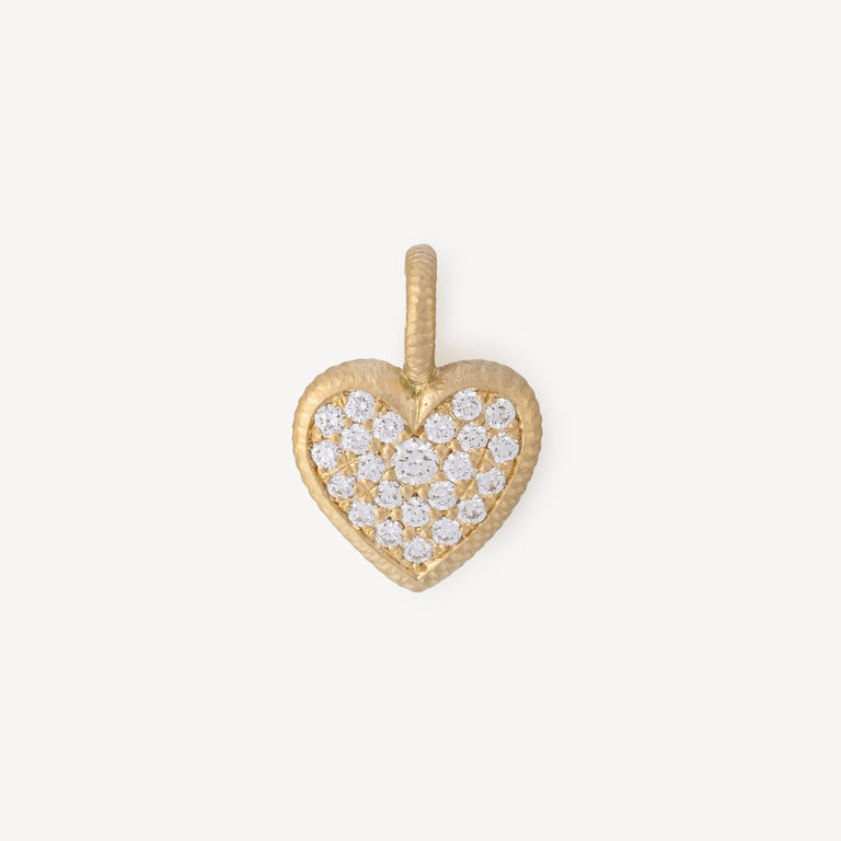 This heart-shaped pendant with diamond pavé is a timeless piece of love jewelry. The soft heart shape makes it comfortable to wear as a necklace, and the multitude of pavé diamonds adds a glamorous glow to your skin.