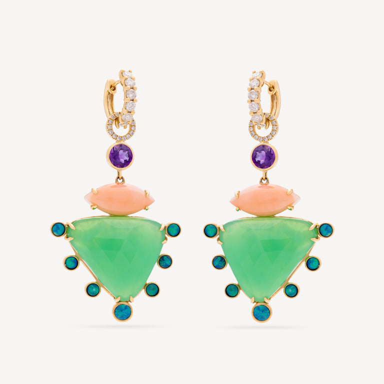 Earrings Chrysoprase Amethyst Opal Diamonds