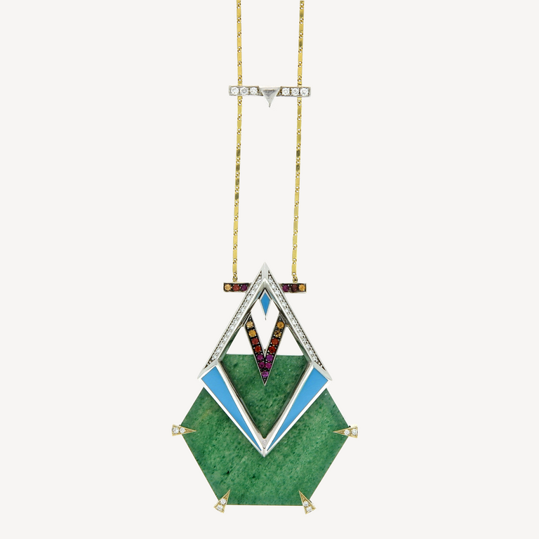 • Materials: Yellow gold, White diamond, Enamel, Amethyst, Multicolored sapphire