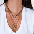 - Materials: Yellow gold, White diamond, Pink sapphire, Amethyst