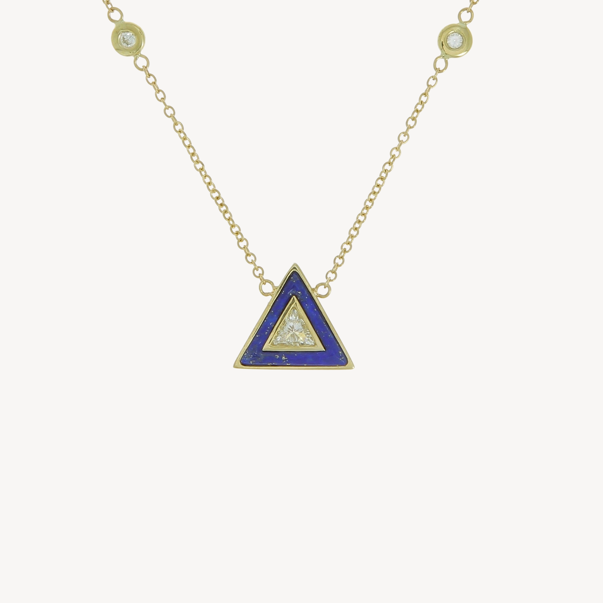 Small lapis and diamond triangle necklace