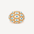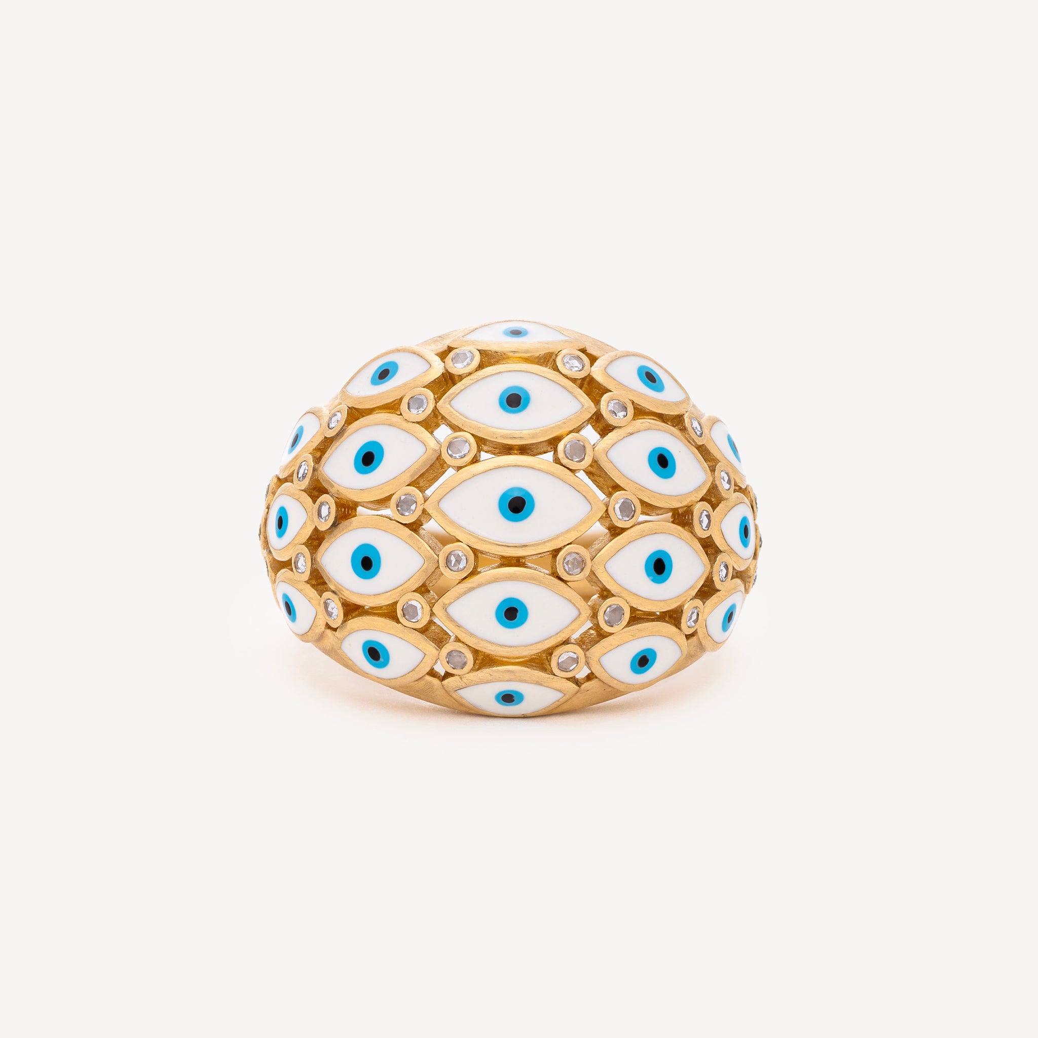 Découvrez l'élégance de la bague Dome Eye de Jacquie Aiche, une création qui fusionne l'art de la joaillerie avec la symbolique mystique. Cette bague d'exception allie l'or jaune à des diamants blancs, offrant un design épuré et moderne qui capture la lumière avec une grâce naturelle. Le diamant blanc, pierre de clarté et de transformation, est réputé pour amplifier l'énergie positive et favoriser la pureté de l'intention.