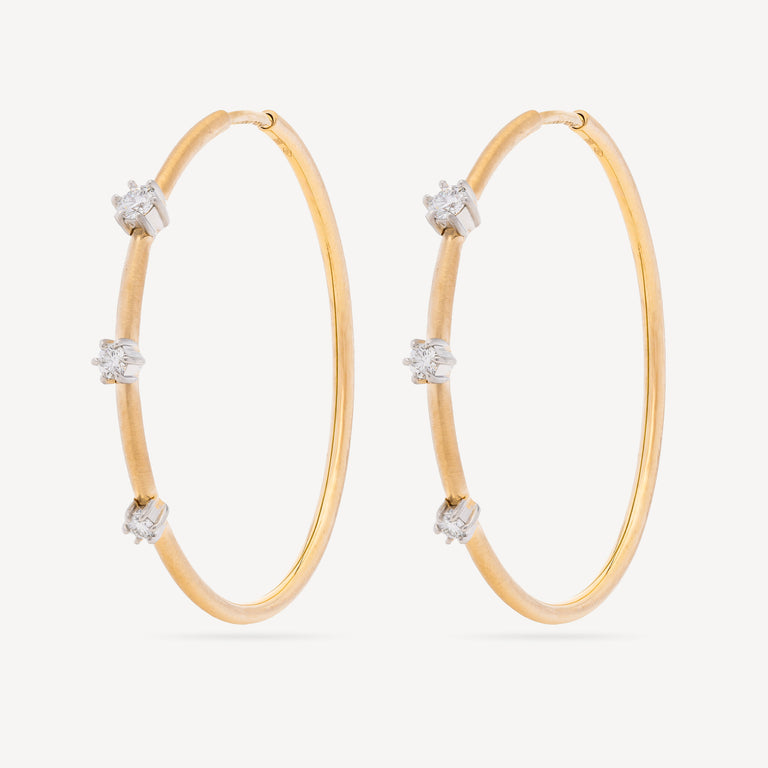 Flexible and lightweight, the Small Plié Two-Tone Penelope hoop earrings feature a malleable design. Handcrafted in 18-carat gold, their silhouette and ease of use make them luxurious yet perfect enough for everyday wear. A symbol of eternity and light, diamonds elevate energies, enhance mental clarity and inner strength, and bring balance and purity to the wearer.