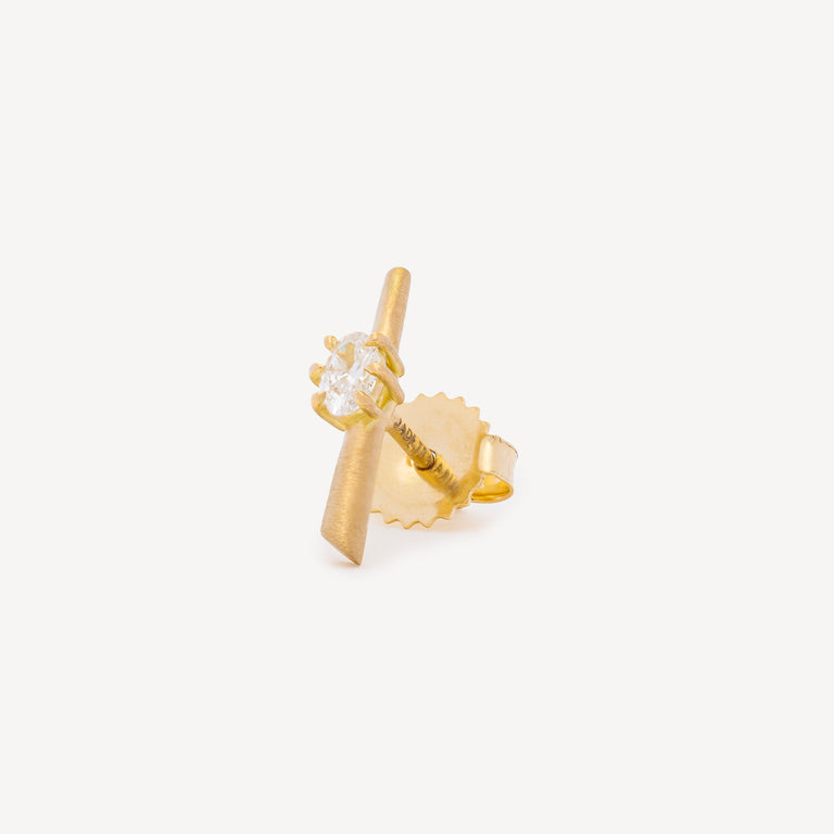 An emblematic piece from Jade Trau, the Rae Diamonds earring seduces with its modern design. Handcrafted in 18-carat gold, it is set with an oval-shaped diamond. Its angular silhouette, enhanced by the Maison's signature matte finish, makes it a contemporary essential. A symbol of eternity and light, diamonds elevate energies, enhance mental clarity and inner strength, and bring balance and purity to the wearer.
