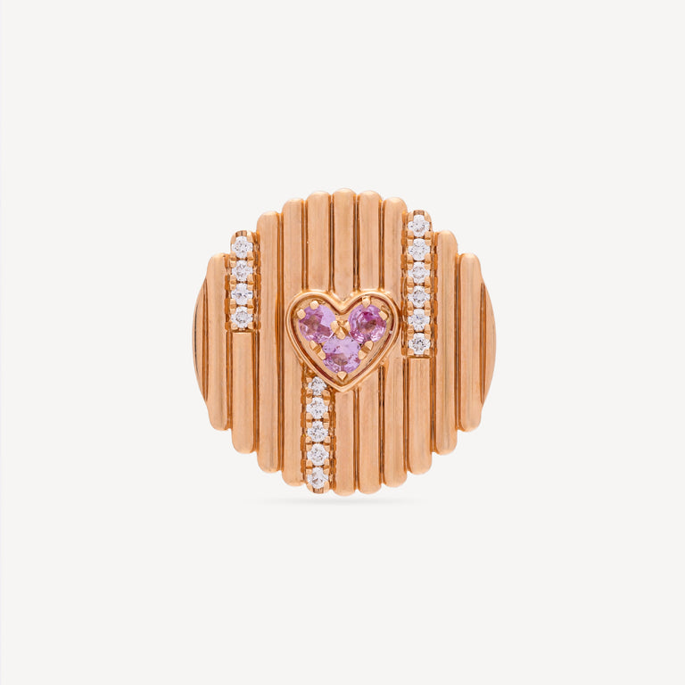 Textured ear Stud in Rose Gold adorned with a pink sapphire heart and white diamonds.