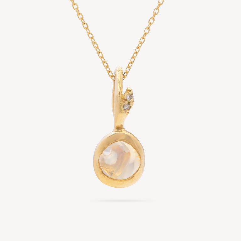 The Drop Charm Water Opal pendant, adorned with a sparkling opal and mounted on a gold chain, brings elegance and luminosity to your everyday life.