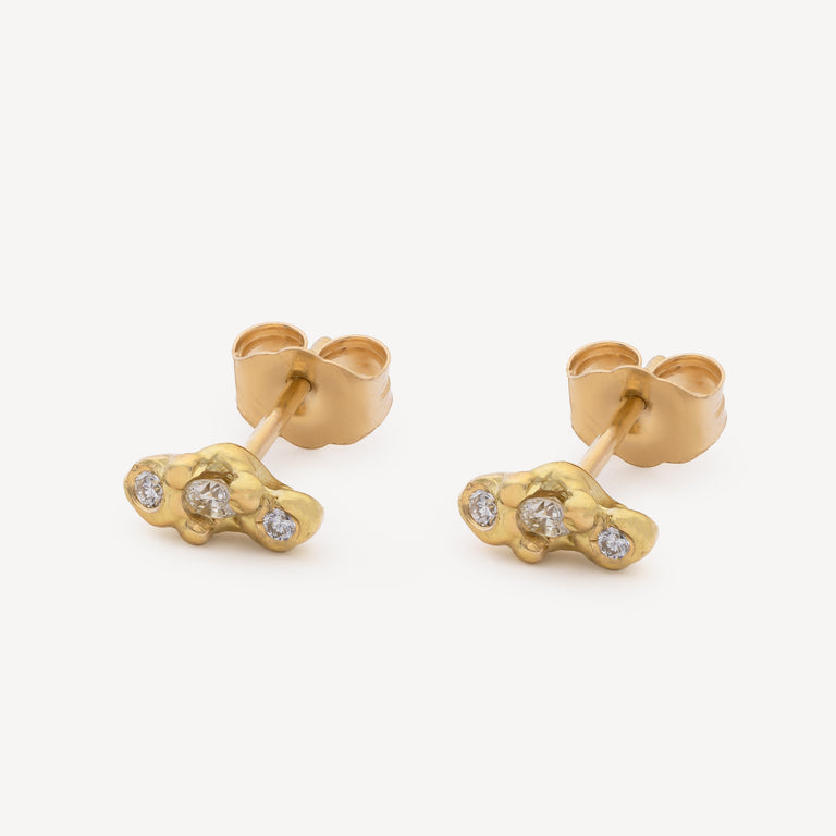 Timeless elegance with a modern twist: these cloud-shaped stud earrings are adorned with three sparkling diamonds.