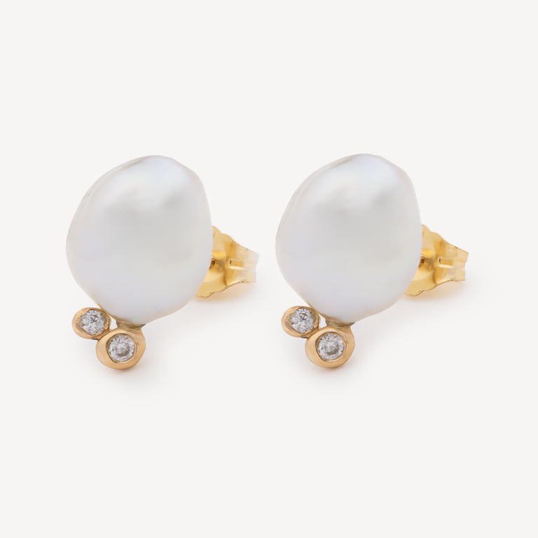 Evoking elegance, Lunar Cloud Pearl Diamonds earrings combine delicate pearly pearls with sparkling diamonds.