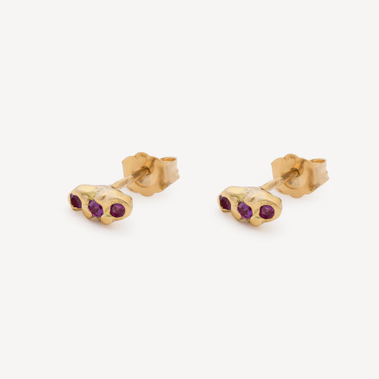 These stud earrings in yellow gold, adorned with sumptuous rubies, combine elegance and refinement. A precious, discreet accessory, ideal for enhancing any outfit.