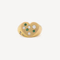 This heart-shaped ring is adorned with dazzling emeralds and sparkling diamonds. With its matte finish, it will add an elegant touch to any outfit.