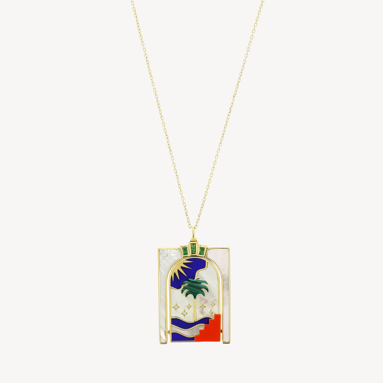 - Materials: Yellow gold, White diamond, Malachite, Lapis
