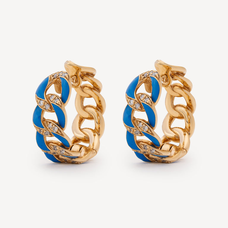 Groumette Earrings Blue Enamel Rose Gold Diamonds
