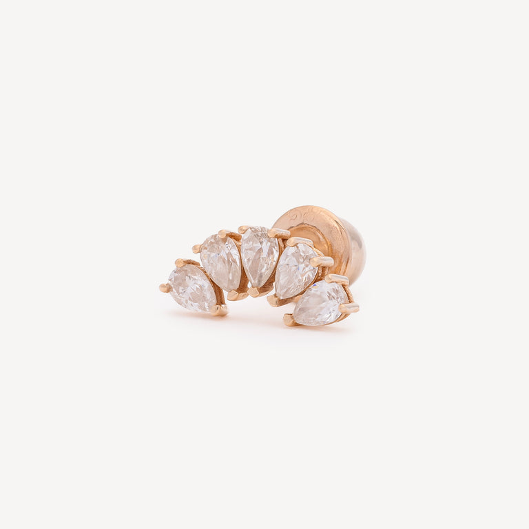 Puce d’oreille en or rose composée de 5 diamants poires.