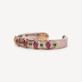 Silver bangle set with rubies and emeralds and yellow gold details.