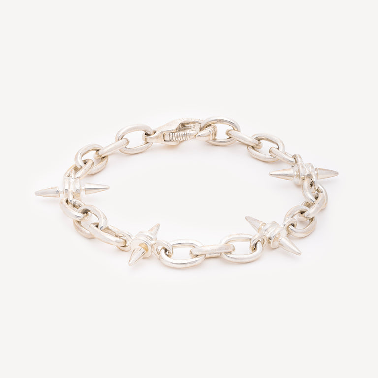 The Renaissance bracelet is made of interlaced links adorned with spikes, crafted in Silver 925. This bracelet adds a distinctive touch to any outfit.