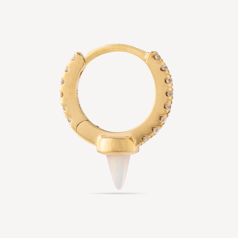 Hoop Earring 6.5mm Spike Opal Diamond Yellow Gold