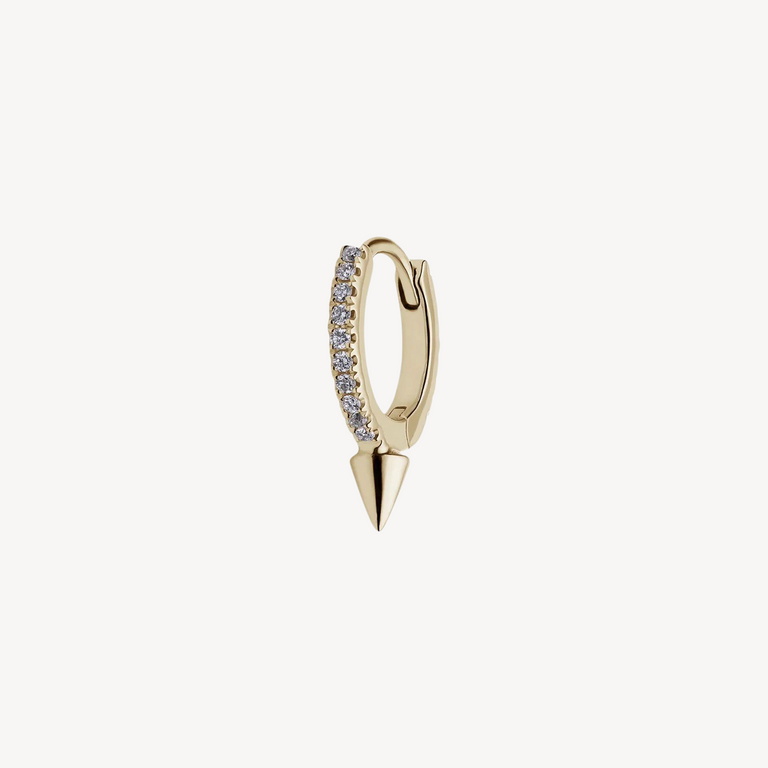 Earring Single Short Spike Diamond Eternity Hoop Yellow Gold