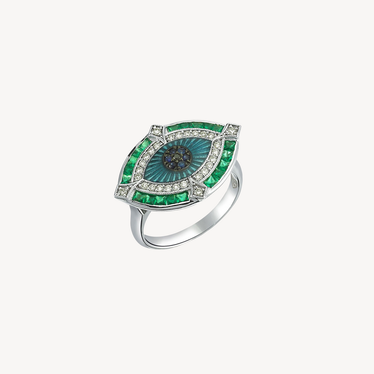 - Materials: White gold, White diamond, Blue sapphire, Tsavorite