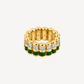 La bague City Glitz de Mirari est une déclaration audacieuse en or jaune et diamants. Cette création conjugue la noblesse de l'or à l'intensité chromatique d'un émail vert profond, générant un contraste visuel saisissant. Gardien de la lumière, le diamant protège et renforce l’esprit.