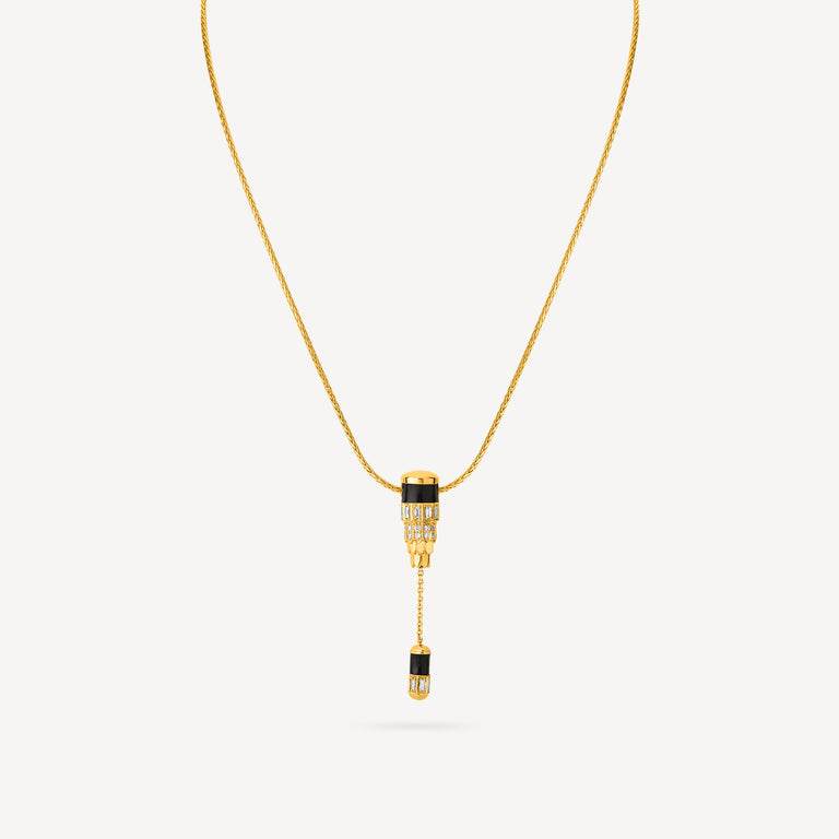 Admirez l'élégance du collier Skyward, une création de la collection Empire State signée Mirari. Cette pièce architecturale marie l'intensité de l'émail noir à la chaleur rayonnante de l'or jaune, sublimée par l'éclat des diamants. Le design Skyward incarne l'aspiration et la verticalité, guidant le regard vers les hauteurs avec grâce. Le diamant agit comme un miroir de l’âme, révélant l’essentiel.