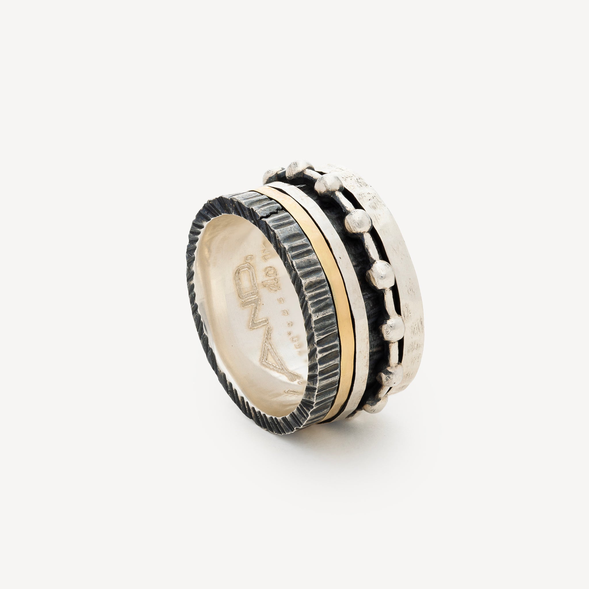 Silver and gold multi-ring effect ring with three movable middle rings. Do you dare..." inscription inside.