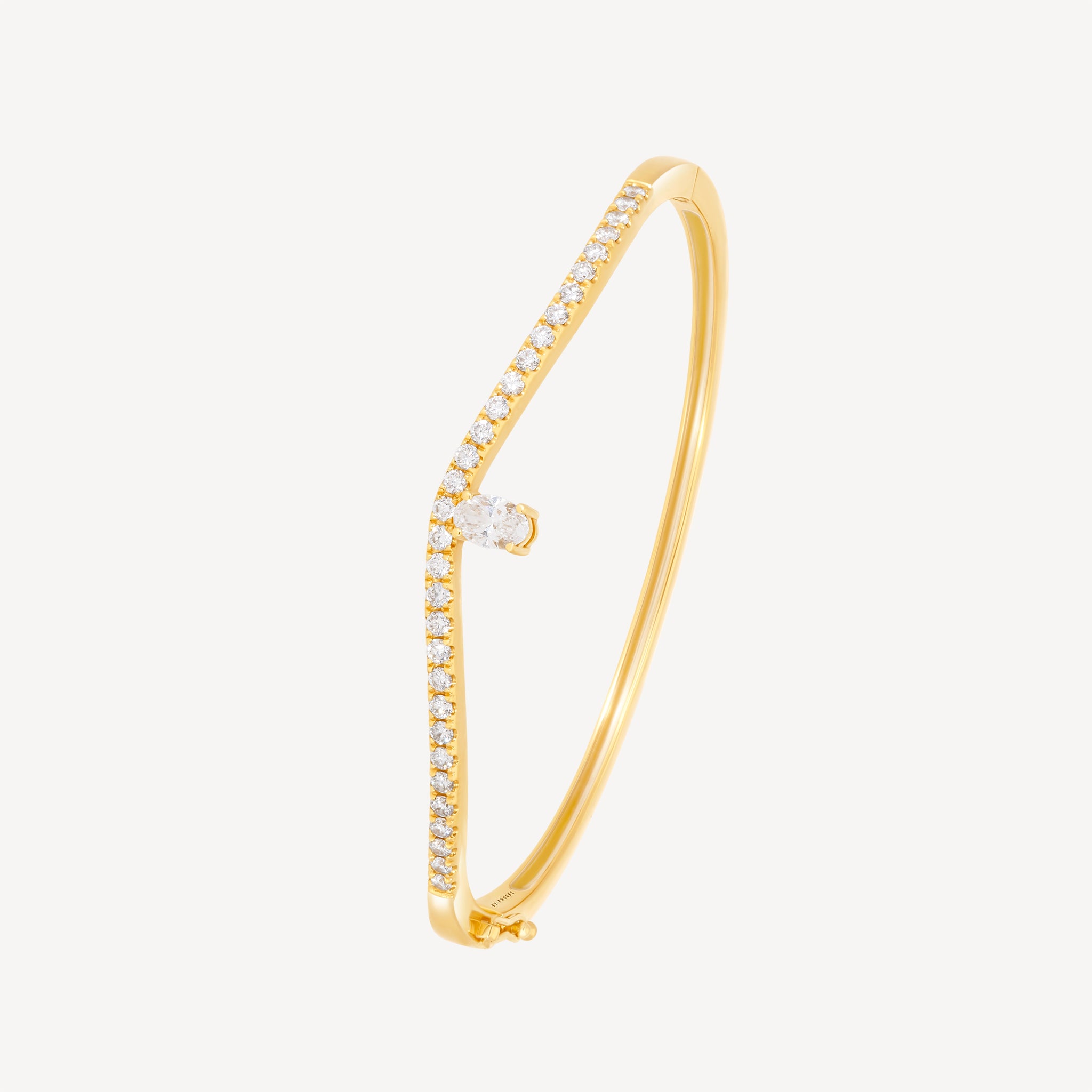 Le bracelet Audace de By Phoebe affirme parfaitement sa forme distinctive et son pavage de diamants blancs sertis en or jaune. La multiplication des diamants de ce modèle amplifie la paix et la perfection.