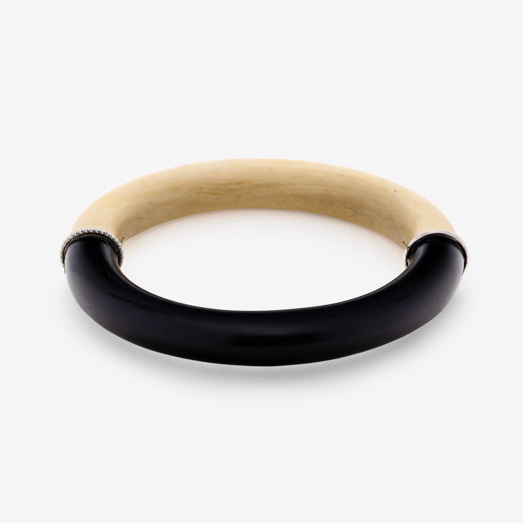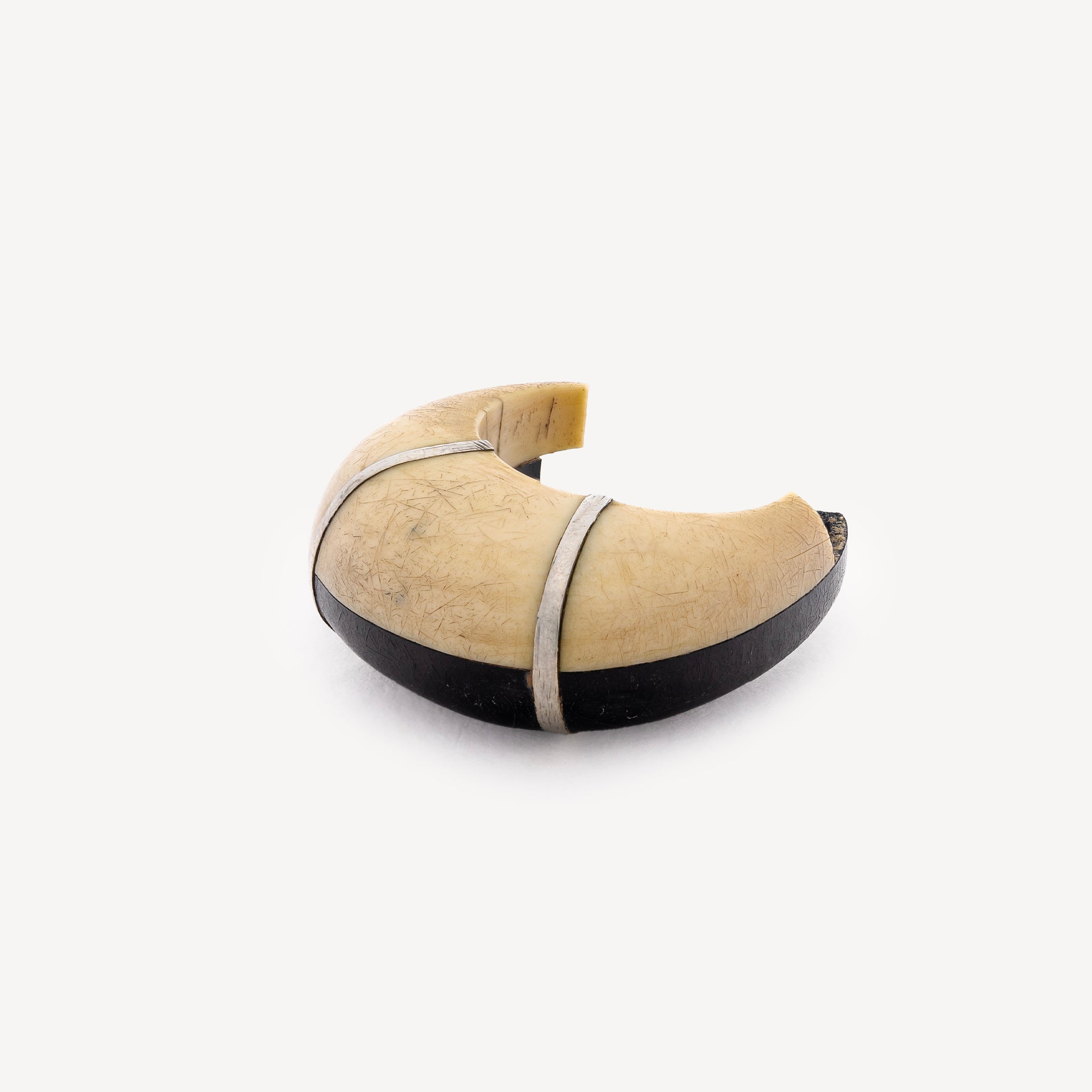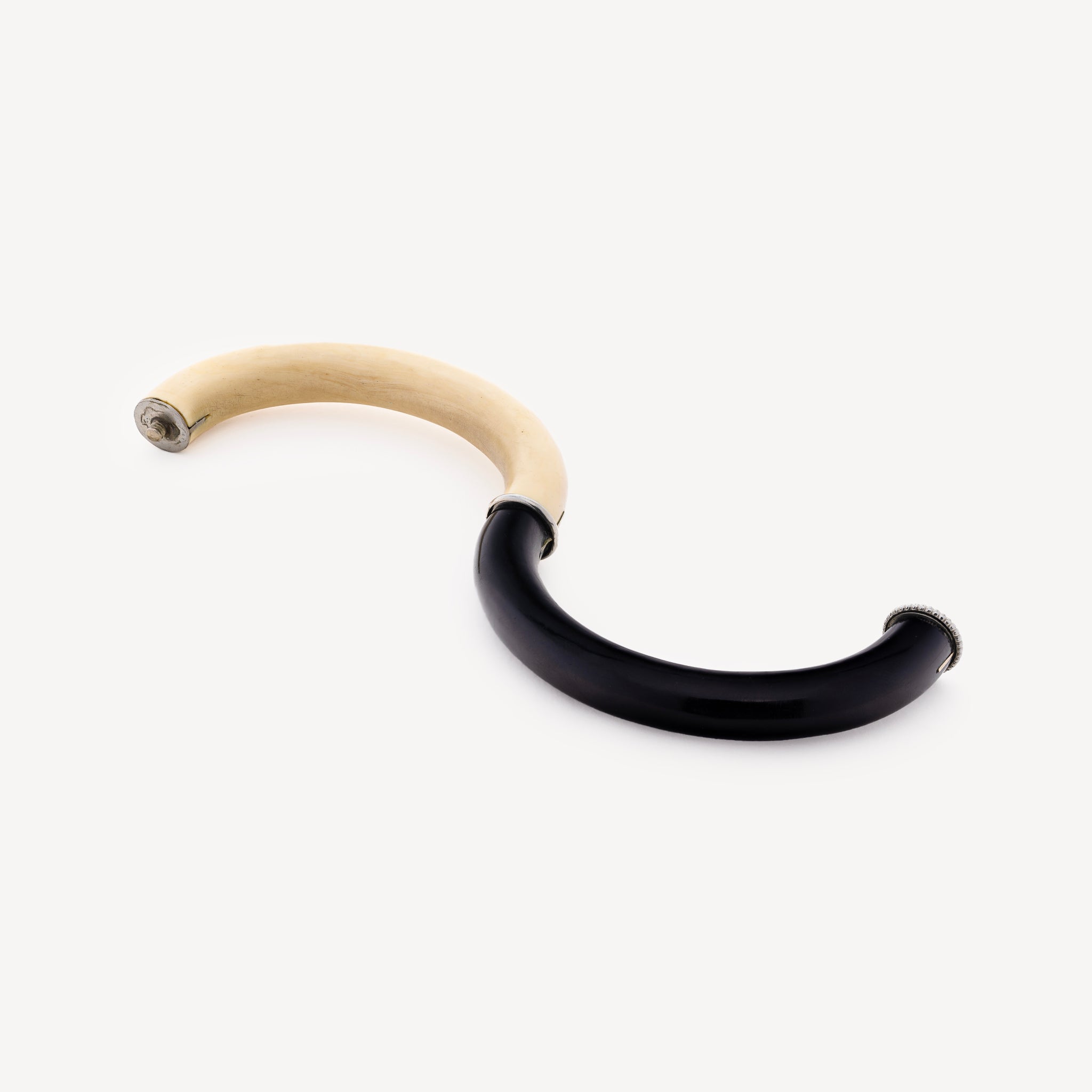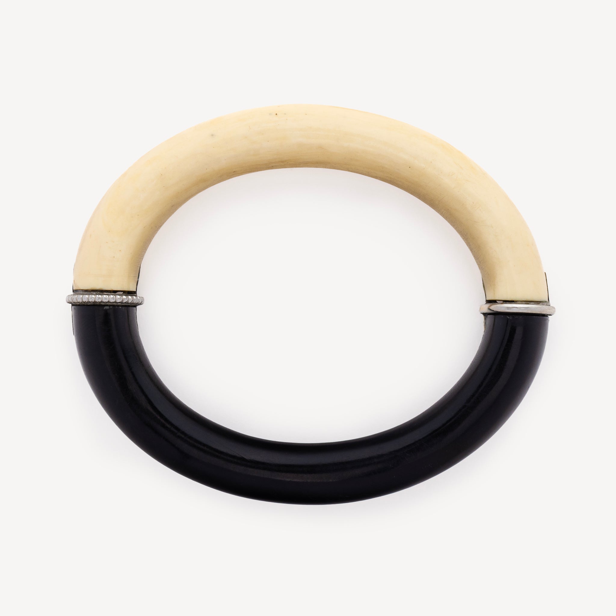 Magnifique coffret avec bracelet et bague réalisé par la Maison Flamand, joaillier des stars des années 1930-1940. Matière supposée ivoire, sans certification possible (notamment CITES). Nous ne pouvons confirmer s’il a appartenu à Joséphine Baker, mais il est très probable qu’il fasse partie d’une collection conçue en son honneur.