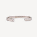 Silver bangle bracelet adorned with flower motifs and diamonds.