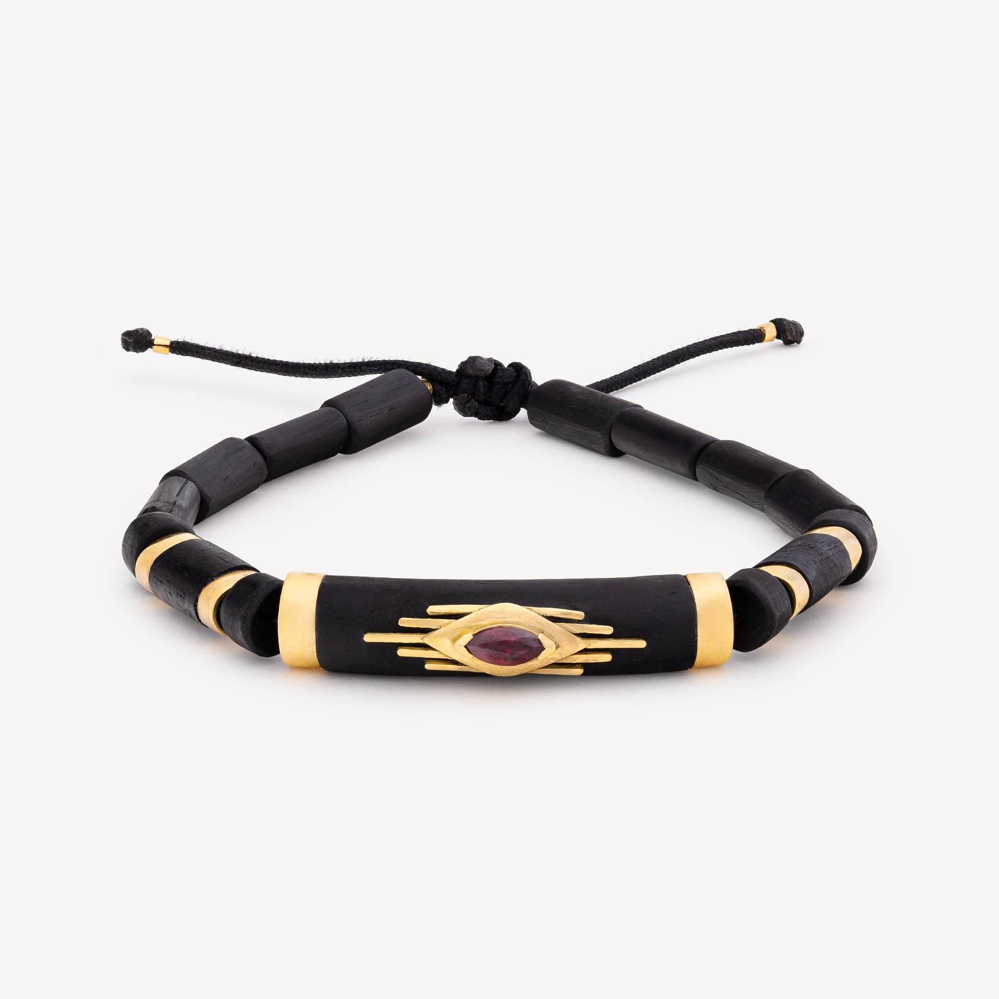 Plongez dans l'univers d'Ailin Jewelry avec le bracelet Ebony Ruby, une création où l'or rose se marie harmonieusement avec l'ébène et le rubis pour une élégance sans compromis. Cette pierre précieuse, symbole de passion et de vitalité, est traditionnellement associée à l'activation de l'énergie vitale et au renforcement de la confiance personnelle. Un bijou d'exception pour affirmer votre présence avec rayonnement.