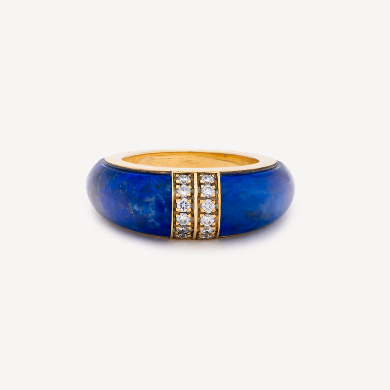 Explorez l'harmonie entre ciel et lumière avec la bague Center Inlay de Jacquie Aiche, une création d'exception qui fusionne l'art et la spiritualité. Le lapis-lazuli ouvre le troisième œil et favorise la sagesse intérieure, tandis que le diamant blanc amplifie la clarté mentale et la pureté de l'intention. Cette bague d'exception présente un sertissage où le lapis aux teintes profondes de bleu se marie harmonieusement avec des diamants blancs. Chaque pierre est minutieusement travaillée pour créer un contraste captivant entre la richesse du lapis et l'éclat cristallin des diamants.