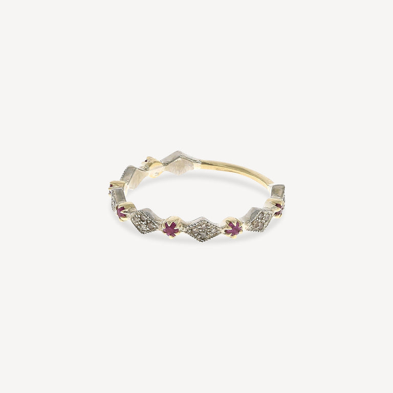 - Materials: Yellow gold, White diamond, Silver, Pink sapphire