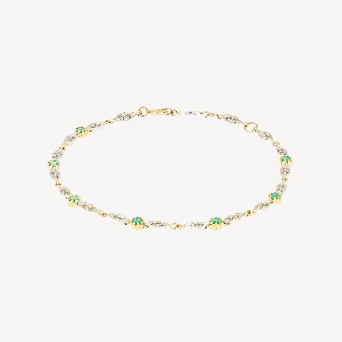 - Materials: Yellow gold, White diamond, Silver, Emerald