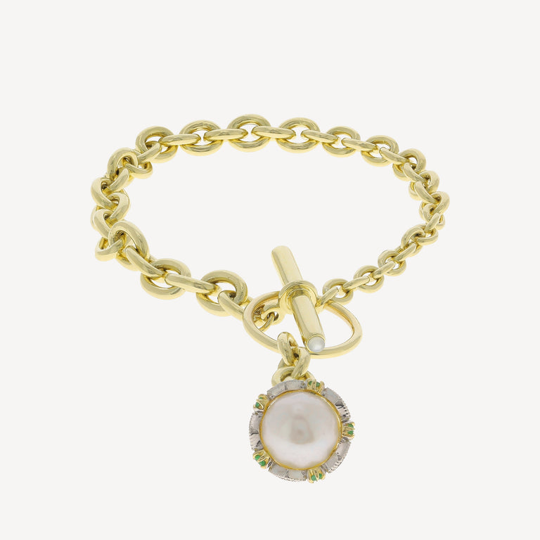 - Materials: Yellow gold, White diamond, Pearl, Emerald