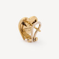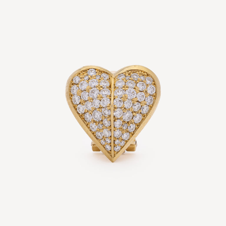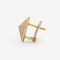Geometric heart-shaped earring in yellow gold paved with white diamonds over the entire surface.