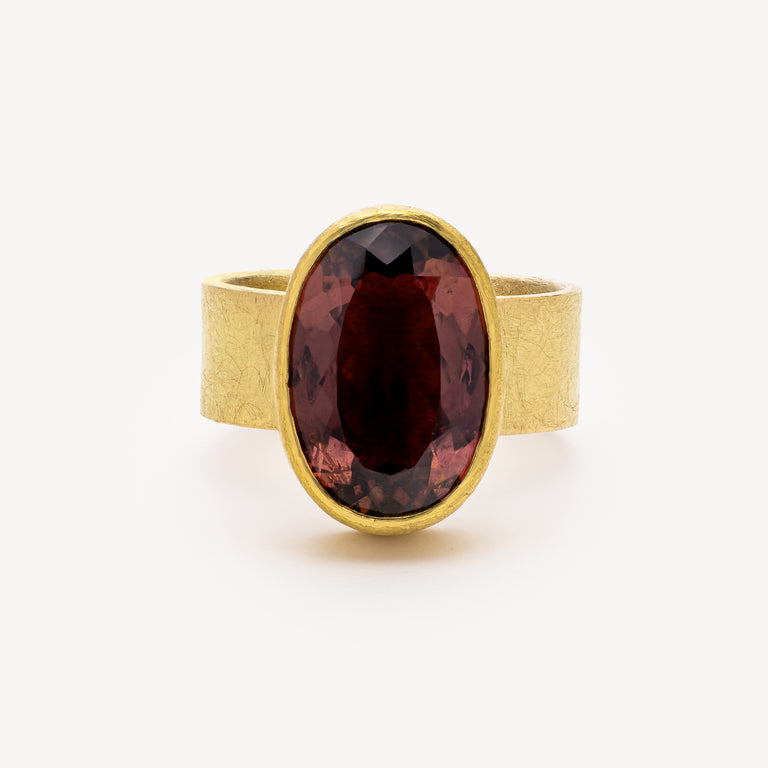 Ring Large Faceted Oval Red Tourmaline