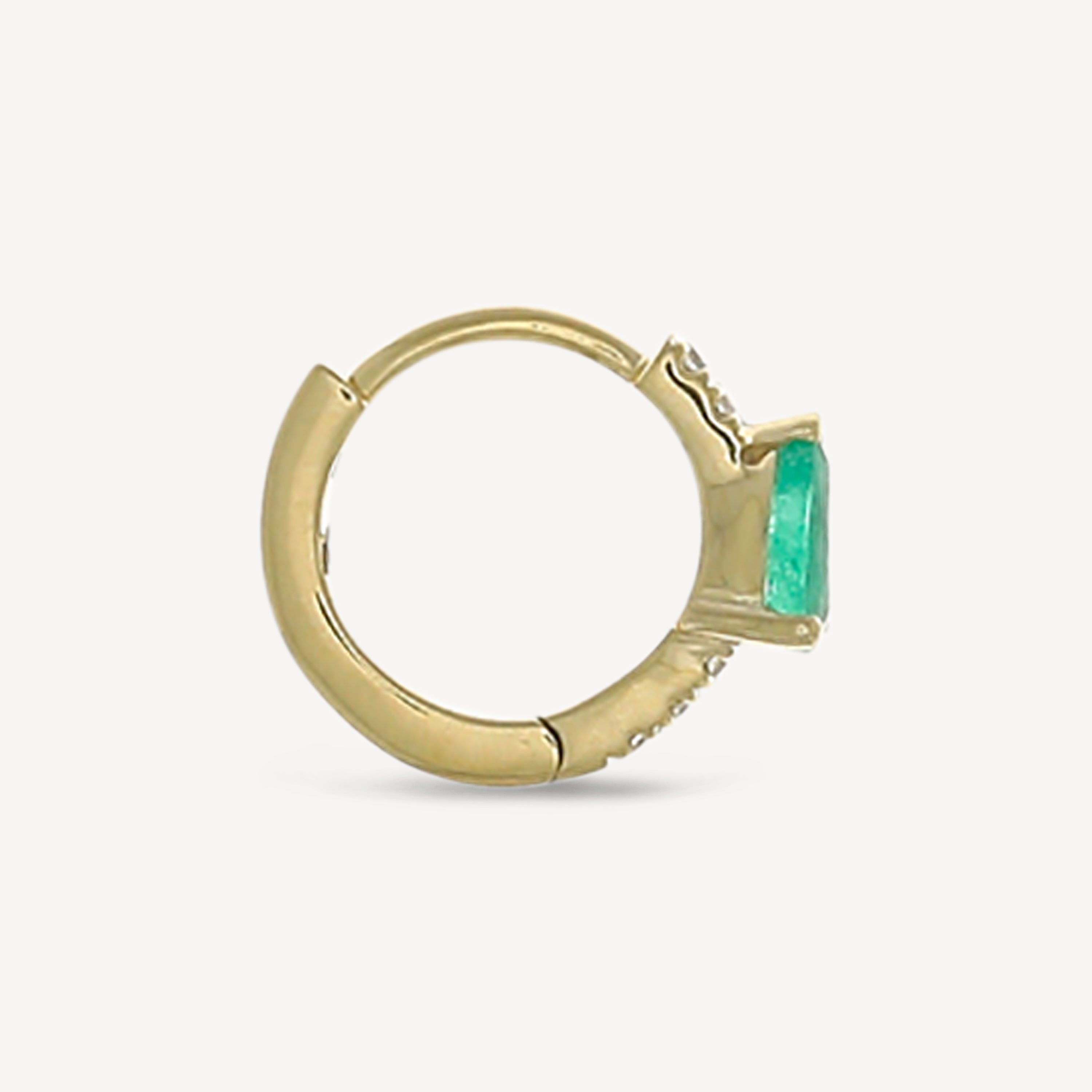Piercing Hoop 8mm Yellow Gold Half Pave Emerald 4.5x3mm
